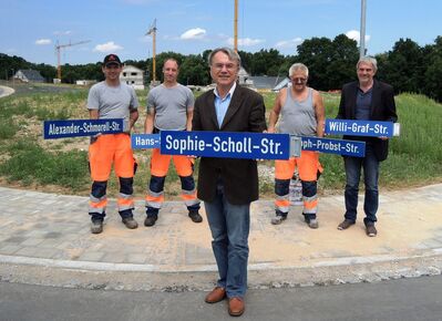 Der Sophie-Scholl-Platz mit dem kleinen angrenzenden Sophie-Scholl-Park in der Mitte von Berg und somit der Gemeinde Berg ist bereits nach der Widerstandskämpferin der „Weißen Rose“ benannt und nun hat die Kommune die Straßen im neuen Baugebiet „Am Ludwigskanal“ den Mitgliedern der Widerstandsgruppe gegen den Nationalsozialismus gewidmet. Nach Aussagen von Bürgermeister Helmut Himmler sind Plätze, Tafeln und Straßen Orte des Erinnerns an die „dunkelste Zeit unserer nationalen Geschichte“.